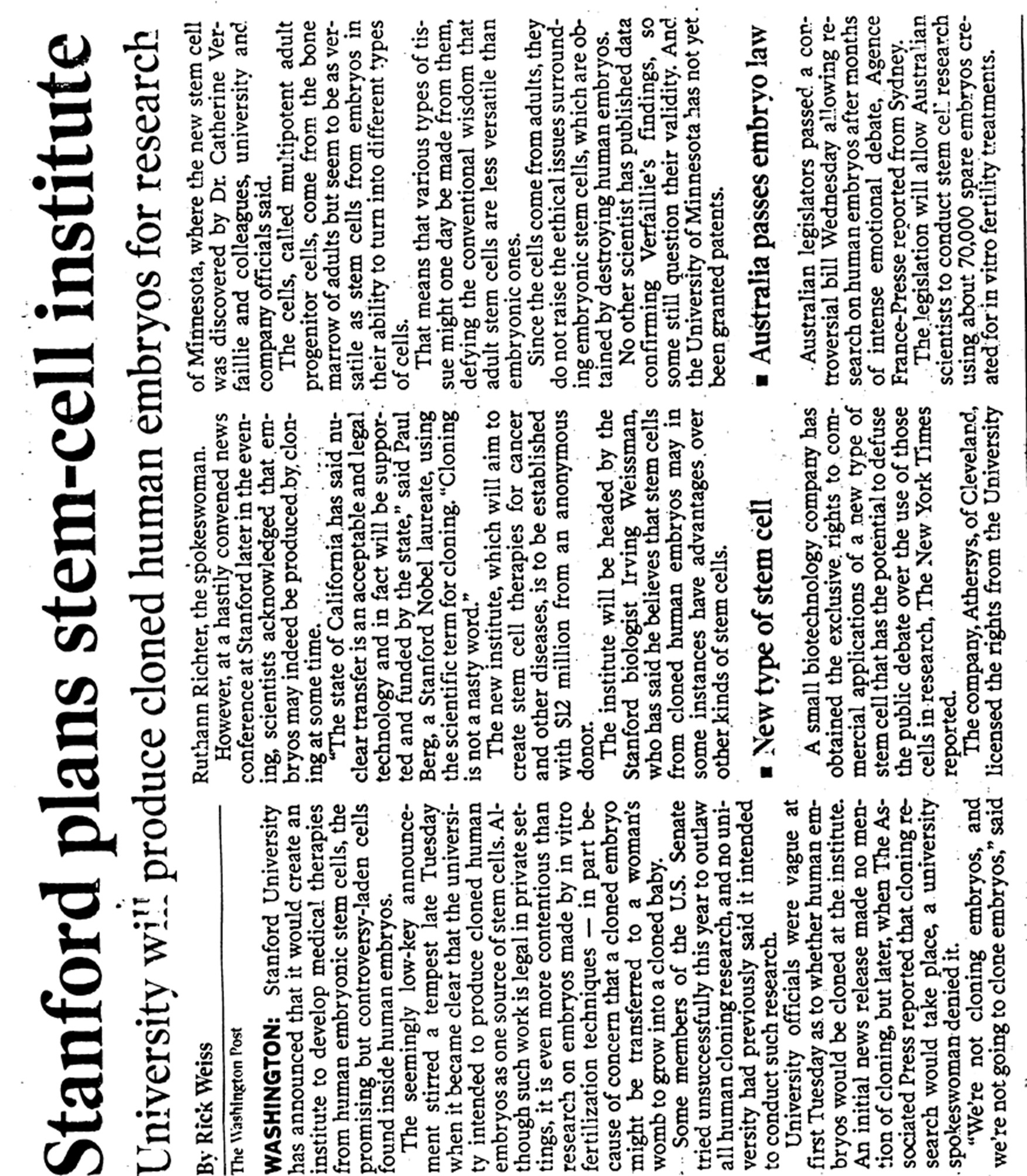 Stanford Magazines Review of Stem Cell Research Debate 2003